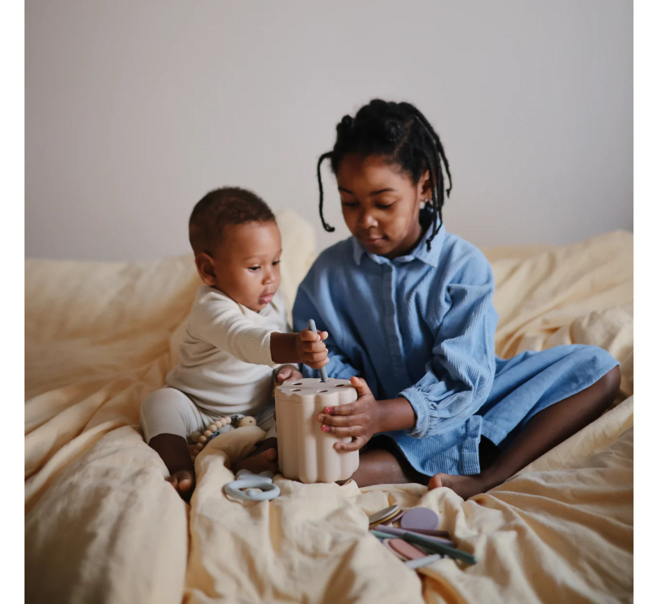 Introduce sorting and matching with our coin & tube sorting box set. The round scalloped box comes with two interchangeable lids and is made of durable PP plastic. As littles fit the 20 colorful coins and tubes through the corresponding openings, they can develop fine motor skills and hand-eye coordination. Whether they're matching or sorting, this versatile toy offers hours of educational play for toddlers.