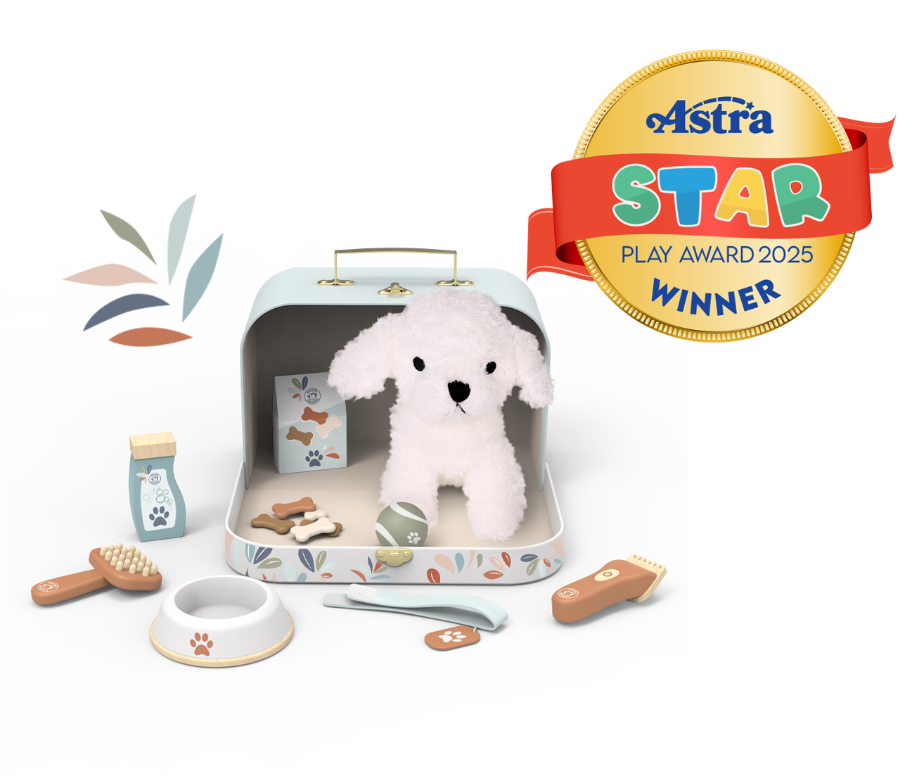 Children will have everything they need in this beautifully designed suitcase to take care of their favorite dog plush (included).
